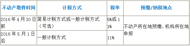 经国务院批准,自2016年5月1日起,在全国范围内全面推开营业税改征增值税试点,建筑业、房地产业、金融业、生活服务业等全部营业税纳税人,由缴纳营业税改为缴纳增值税。根据《财政部国家税务总局关于全面推开营业税改征增值税试点的通知》(财税〔2016〕36号)和现行增值税有关规定,国家税务总局发布了《纳税人提供不动产经营租赁服务增值税征收管理暂行办法》,明确纳税人提供不动产经营租赁服务增值税征收管理问题。