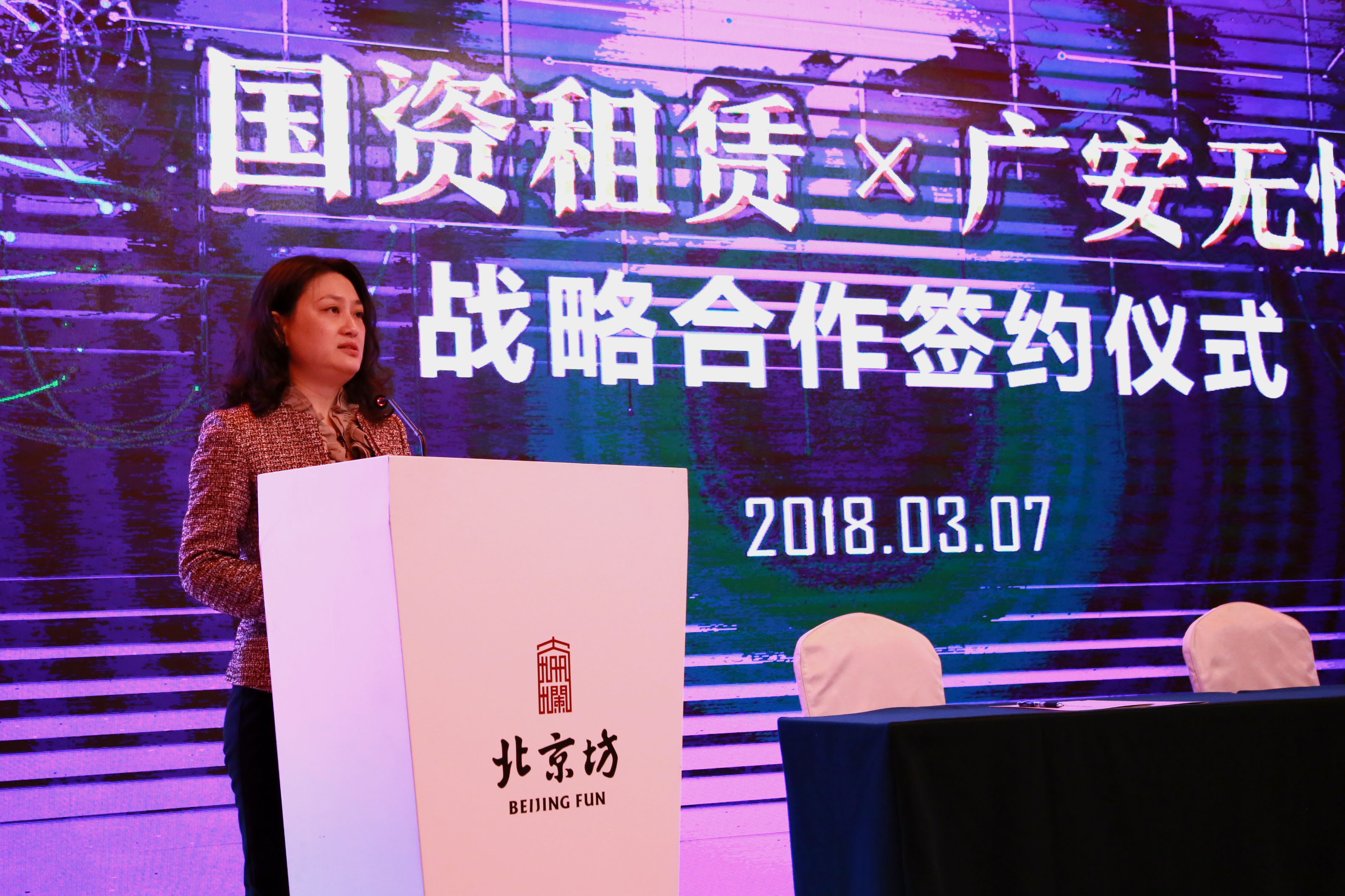 3月7日,北京国资融资租赁股份有限公司与北京广安无忧科技有限公司在京签署战略合作协议。北京金融街资本运营中心总经理程瑞琦主持签约仪式,北京国资租赁公司董事长孙婧、北京广安控股有限公司董事长申献国出席签约仪式并致辞。