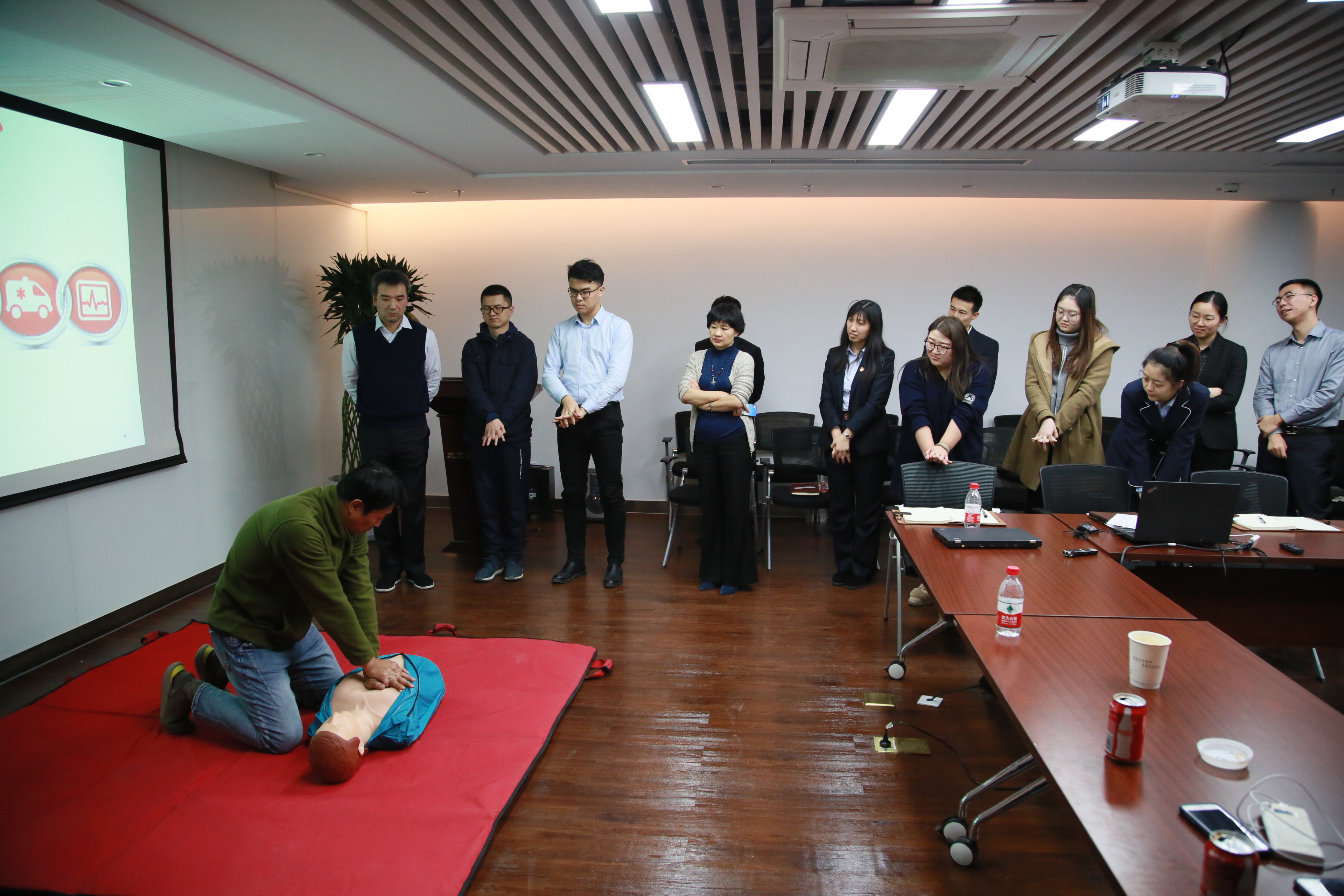 北京市应急救援协会都海郎会长及其团队从火灾的隐患、紧急处置和应急避险等方面进行了全方位讲解,并模拟办公区火灾逃生开展实景演练。同时,为进一步增强员工安全意识,提高应急突发状况处置能力,结合公司员工出差多、拜访生产型企业多的实际情况,有针对性地对突发自然灾害、群体性踩踏事故、用电安全等方面进行了专题讲解,对出血、骨折、心肺复苏、脊椎损伤等情况的急救处置进行了培训和演练。